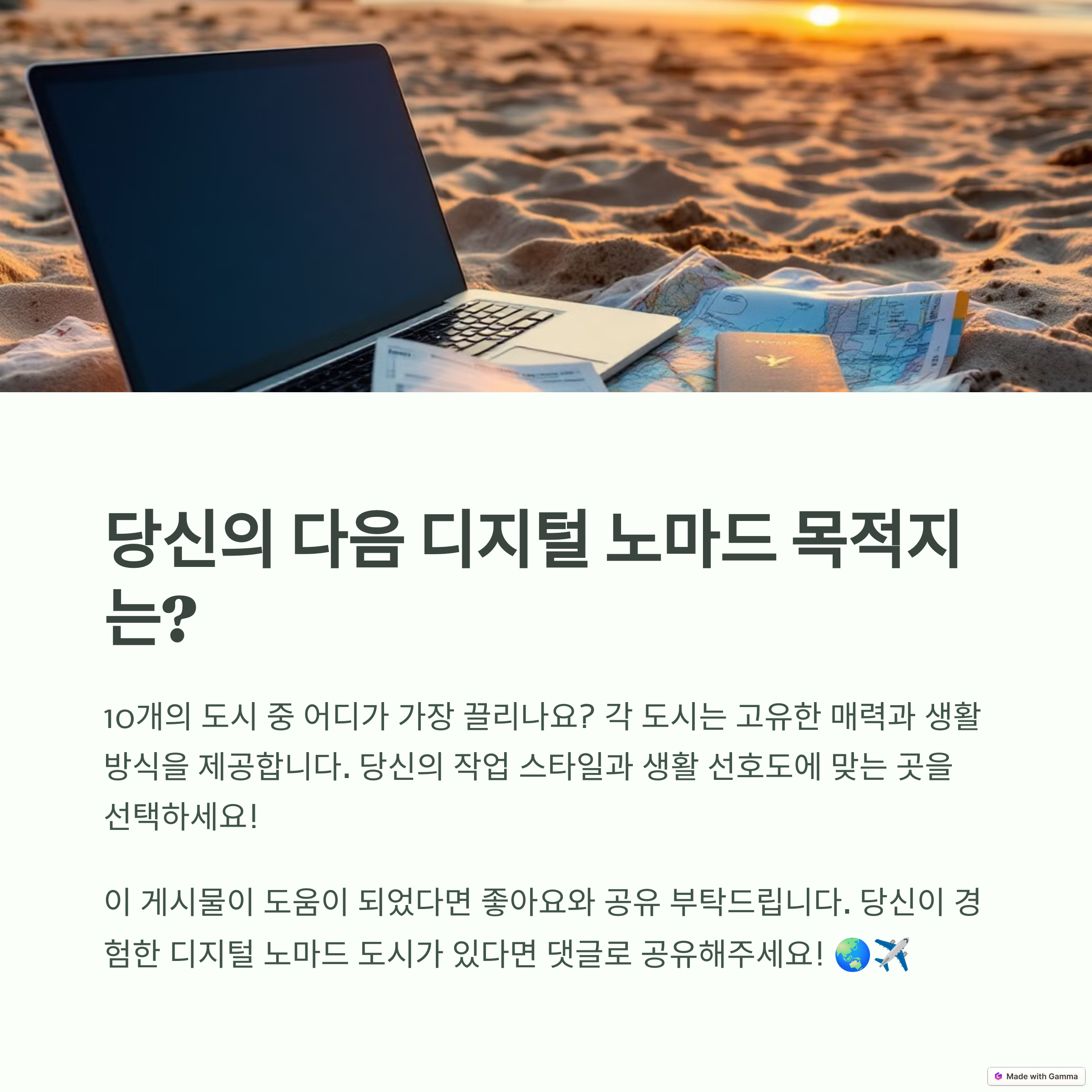 디지털 노마드로서의 삶은 자유롭고 흥미진진하지만, 그만큼 많은 고민이 필요하기도 합니다. 어느 도시가 나에게 가장 적합할지 신중하게 선택하고, 현지에서의 경험을 충분히 즐겨보세요! 혹시 여러분이 추천하는 도시가 있다면 댓글로 공유해 주세요. 😊